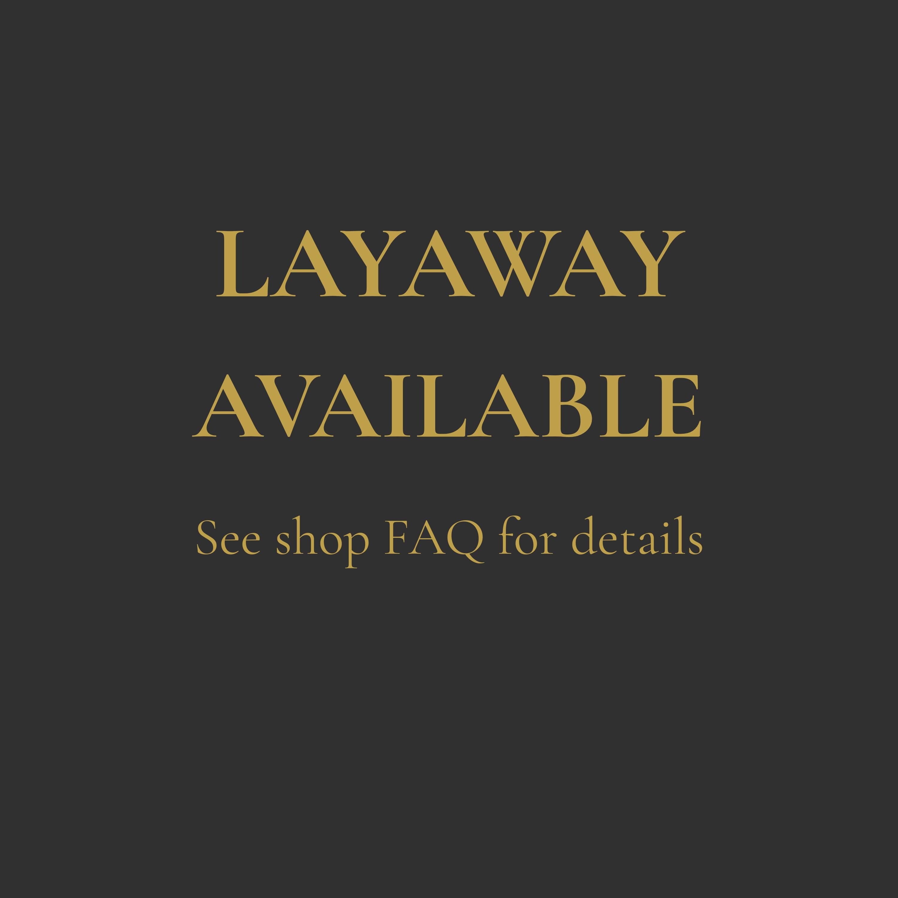 We are pleased to offer interest-free layaway on pieces priced at $500 and above.