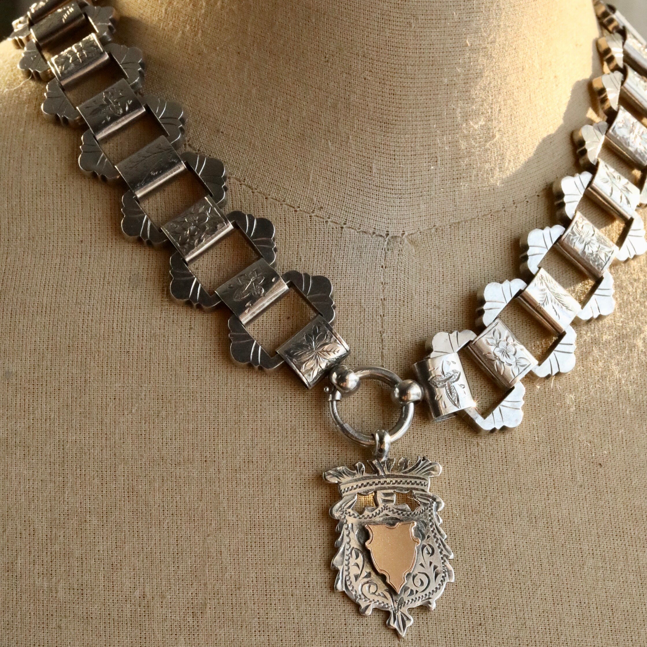 This antique Edwardian fob is an exceptional mixed-metal piece, crafted in sterling silver with a raised 14k rose gold shield at its center. Hand-engraved scrollwork decorates the front, while the reverse bears an award inscription for the 3rd Oxford & Bucks Light Infantry, dated 1916. This distinguished British regiment served actively during World War I, giving the piece rare historical provenance and strong collector appeal.