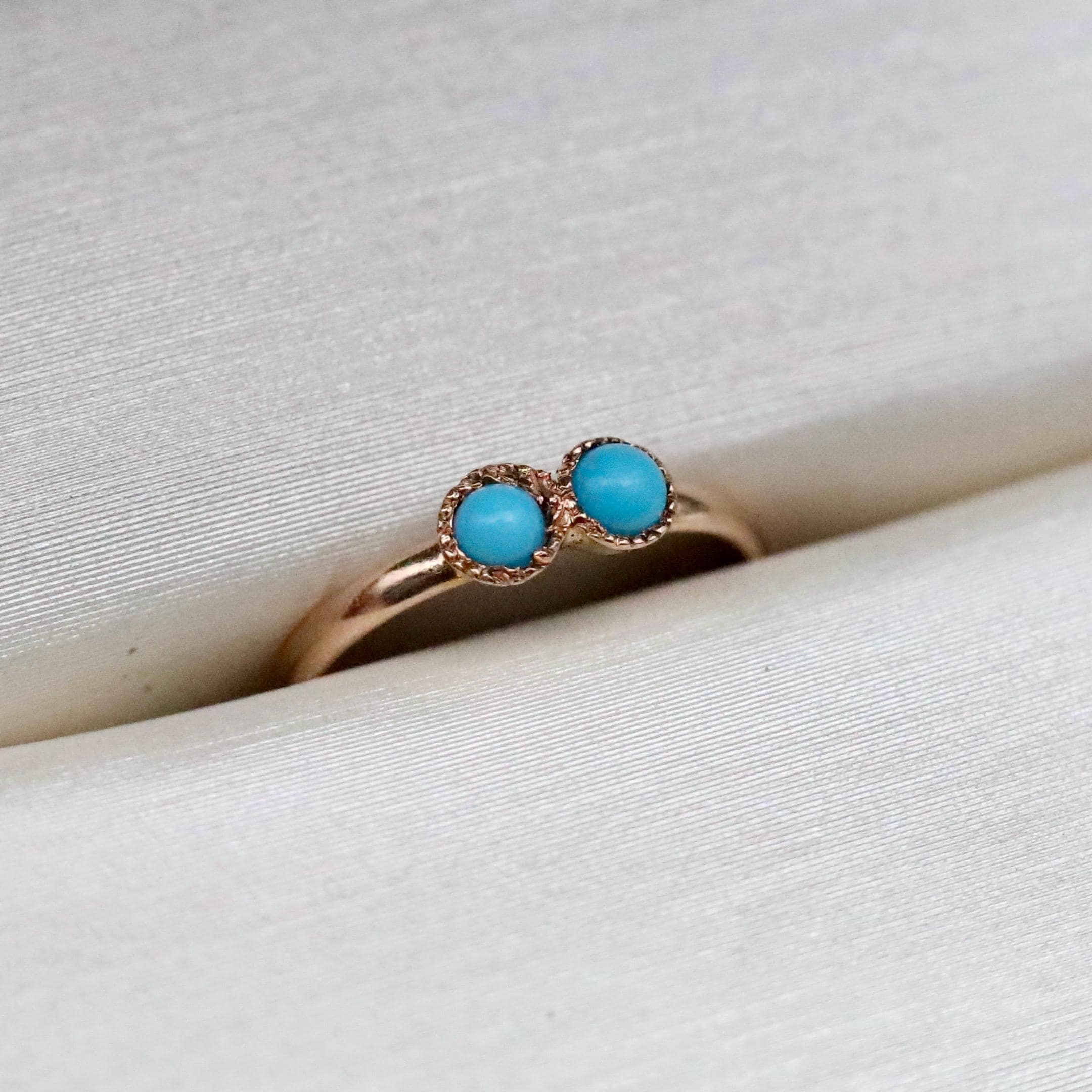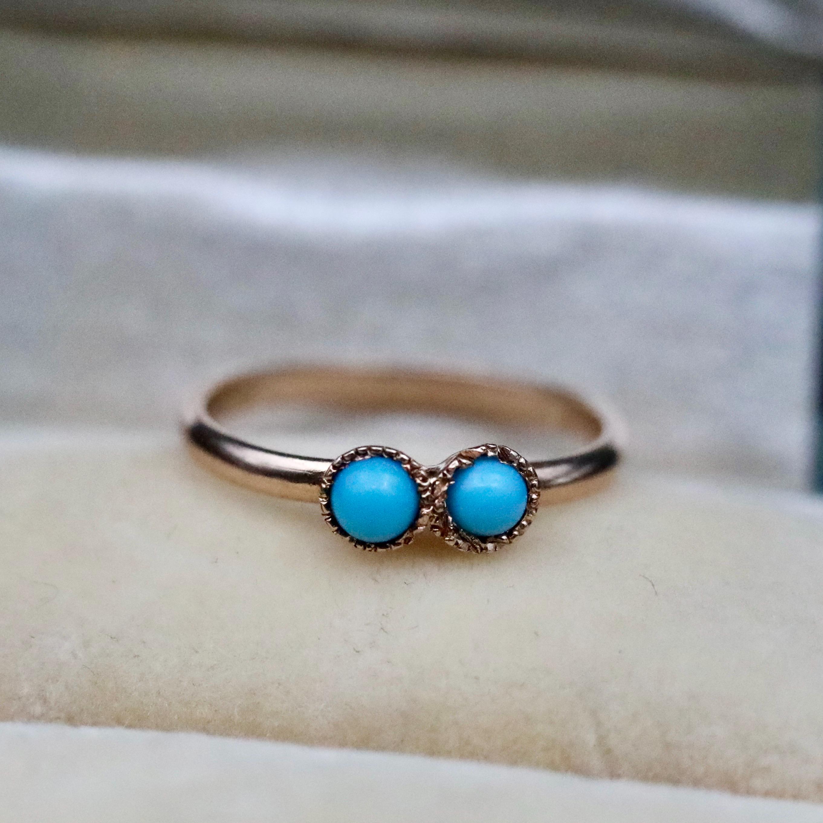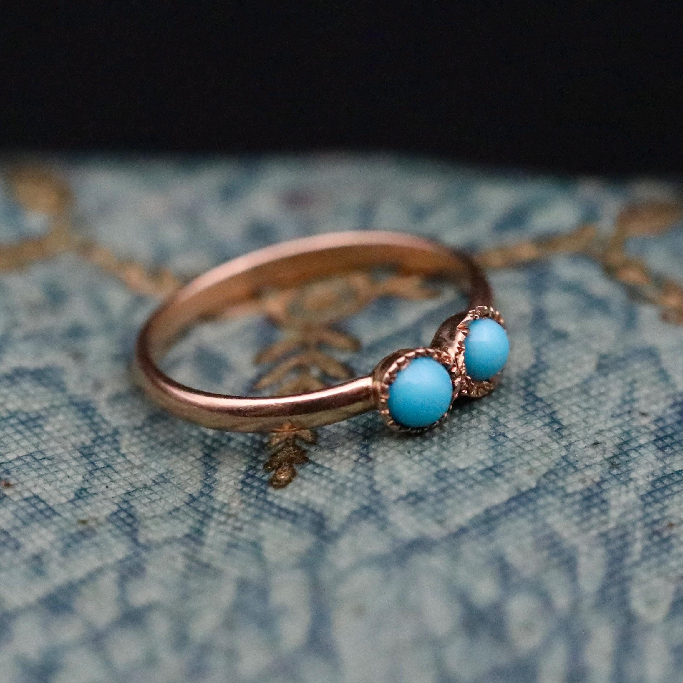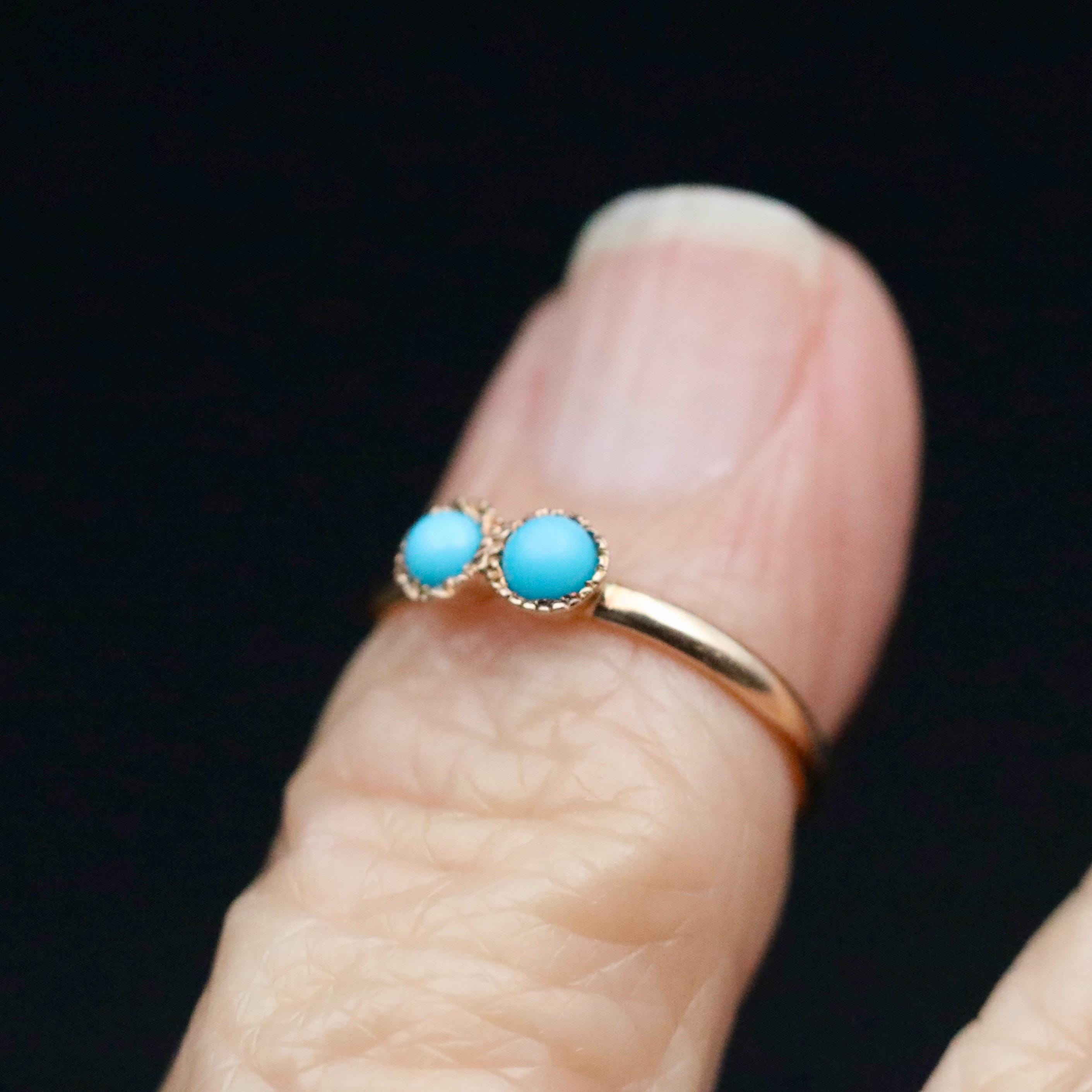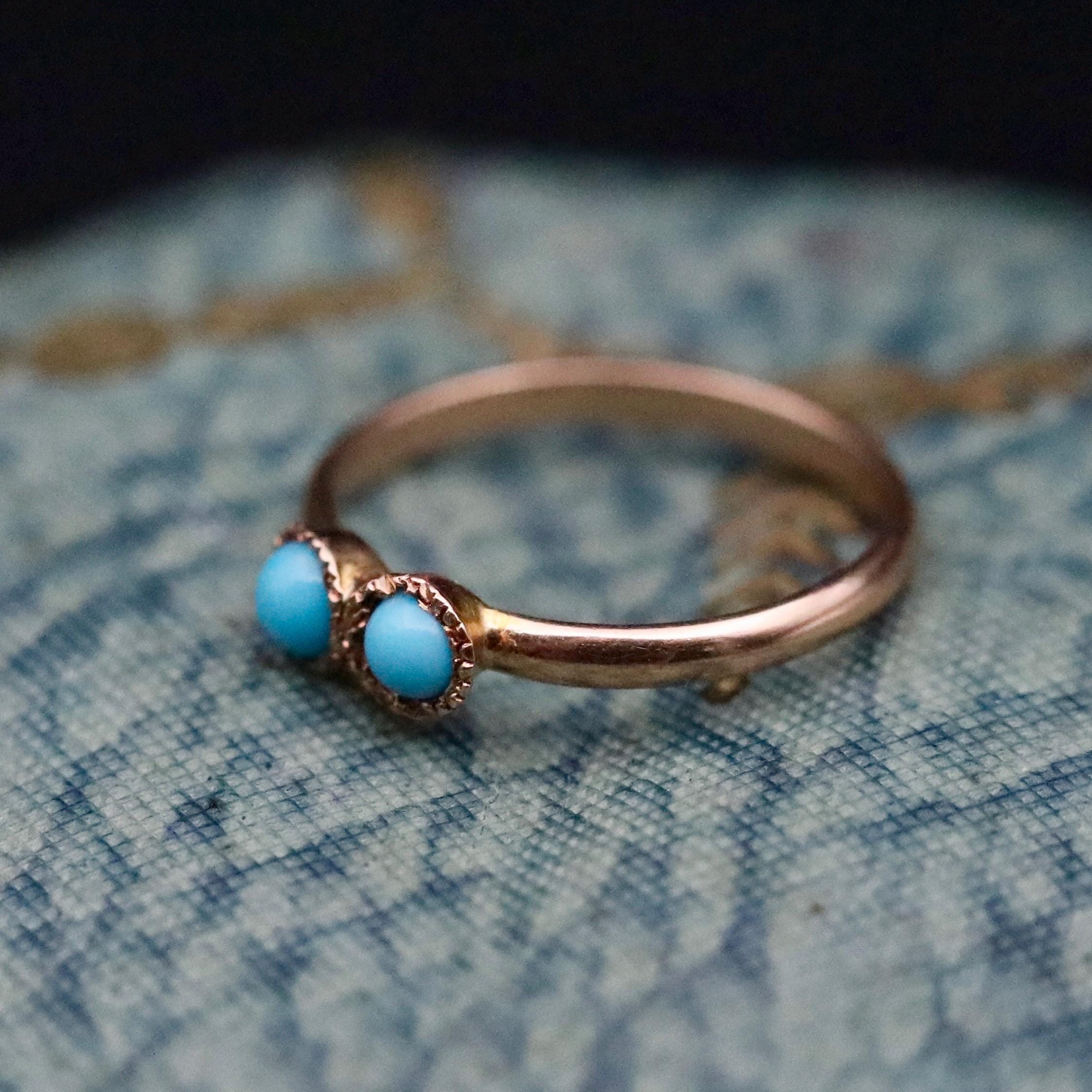 This Victorian turquoise and 14k gold baby ring is so cute and in great condition. Would make a perfect baby shower gift for someone expecting in December, especially twins. Wear it as a gold charm on a chain or a pinky midi ring for someone with smaller fingers. The inside diameter is 11.88mm, which roughly translates to a US size 1/2.