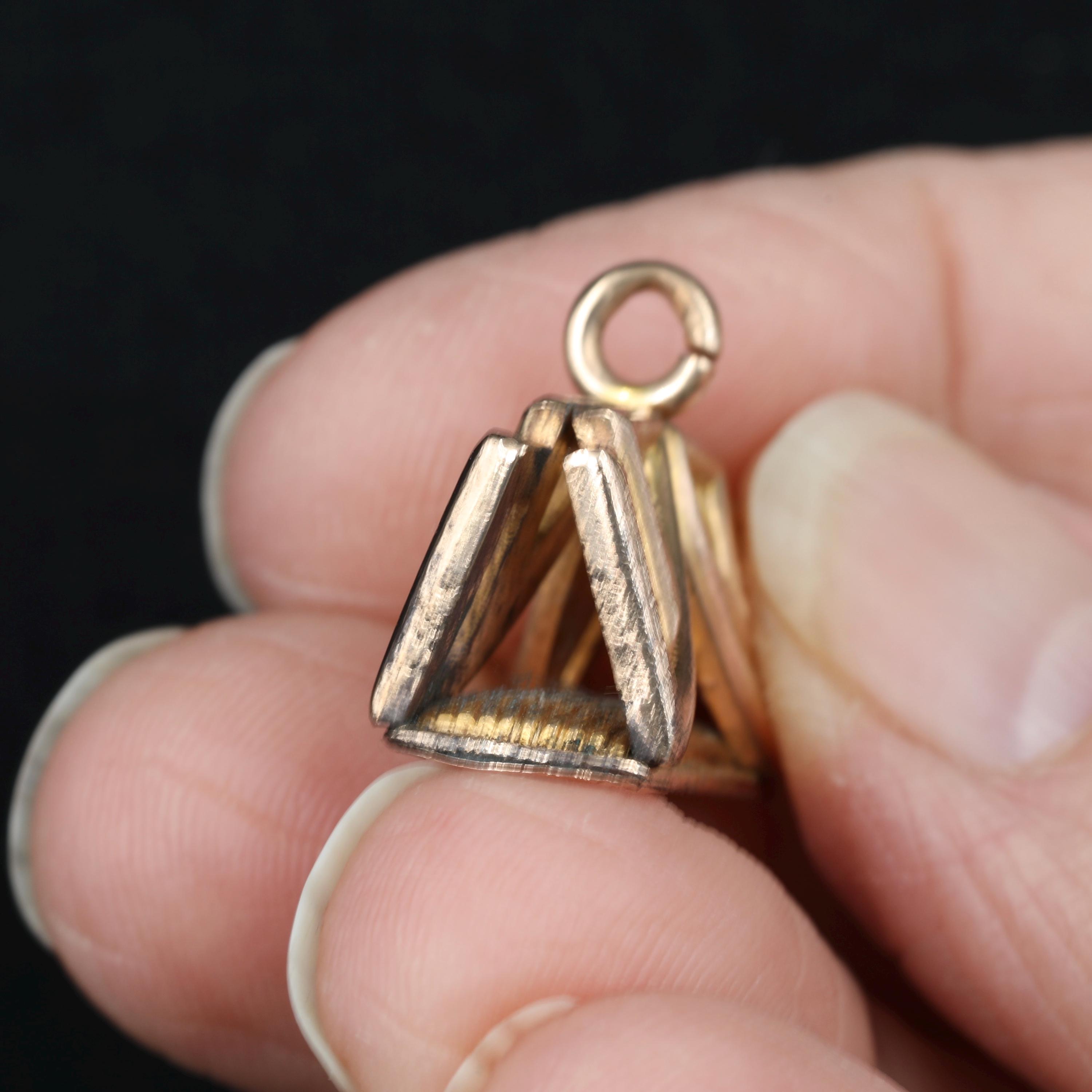 This substantial Victorian-era fob charm is crafted in rich 14k gold fill and features a distinctive triangular, three-dimensional form with period-correct detailing. Originally designed as a watch fob, it now lends itself beautifully as a statement charm or pendant, whether worn on a fine gold chain or incorporated into a more layered necklace design.