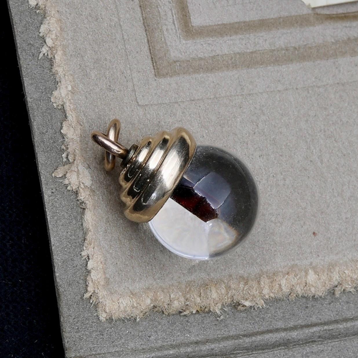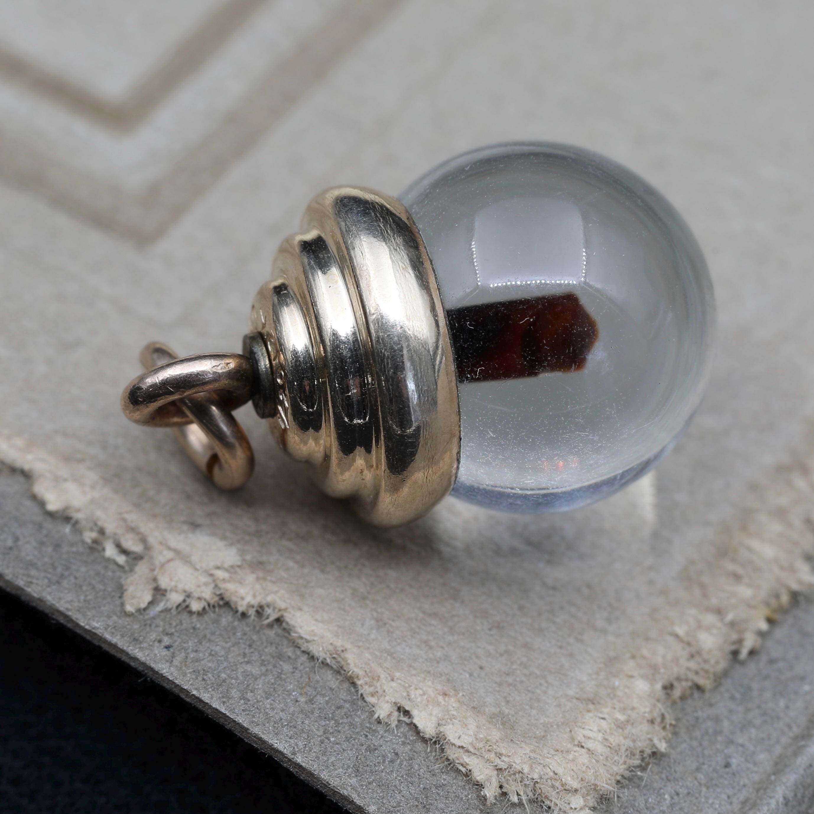 This round globe charm is reminiscent of pool of light beads. Delicate and lightweight, this is a nicely made and unusual piece. This charm is marked 12k GF on the top.