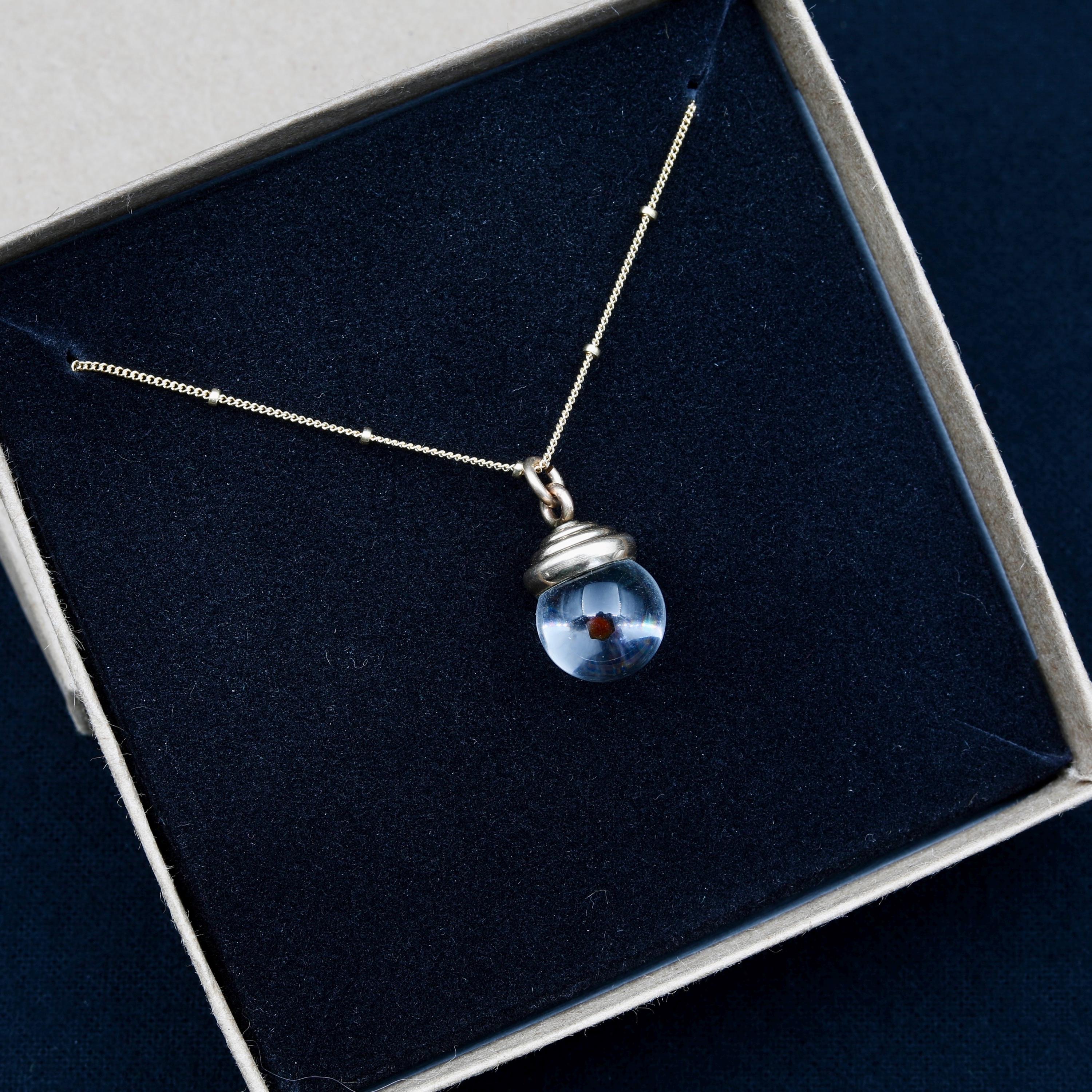 Mustard seed in medium inside orb