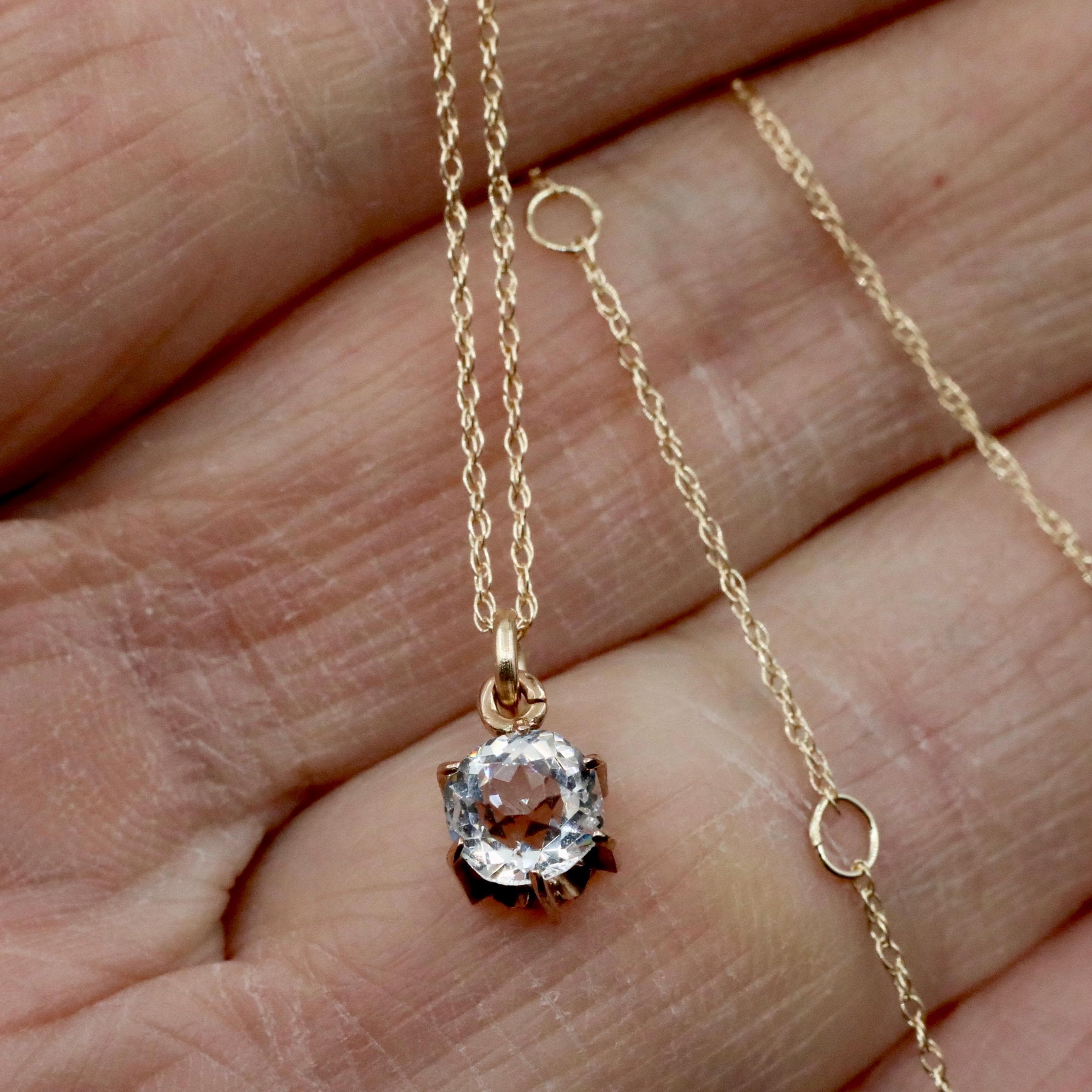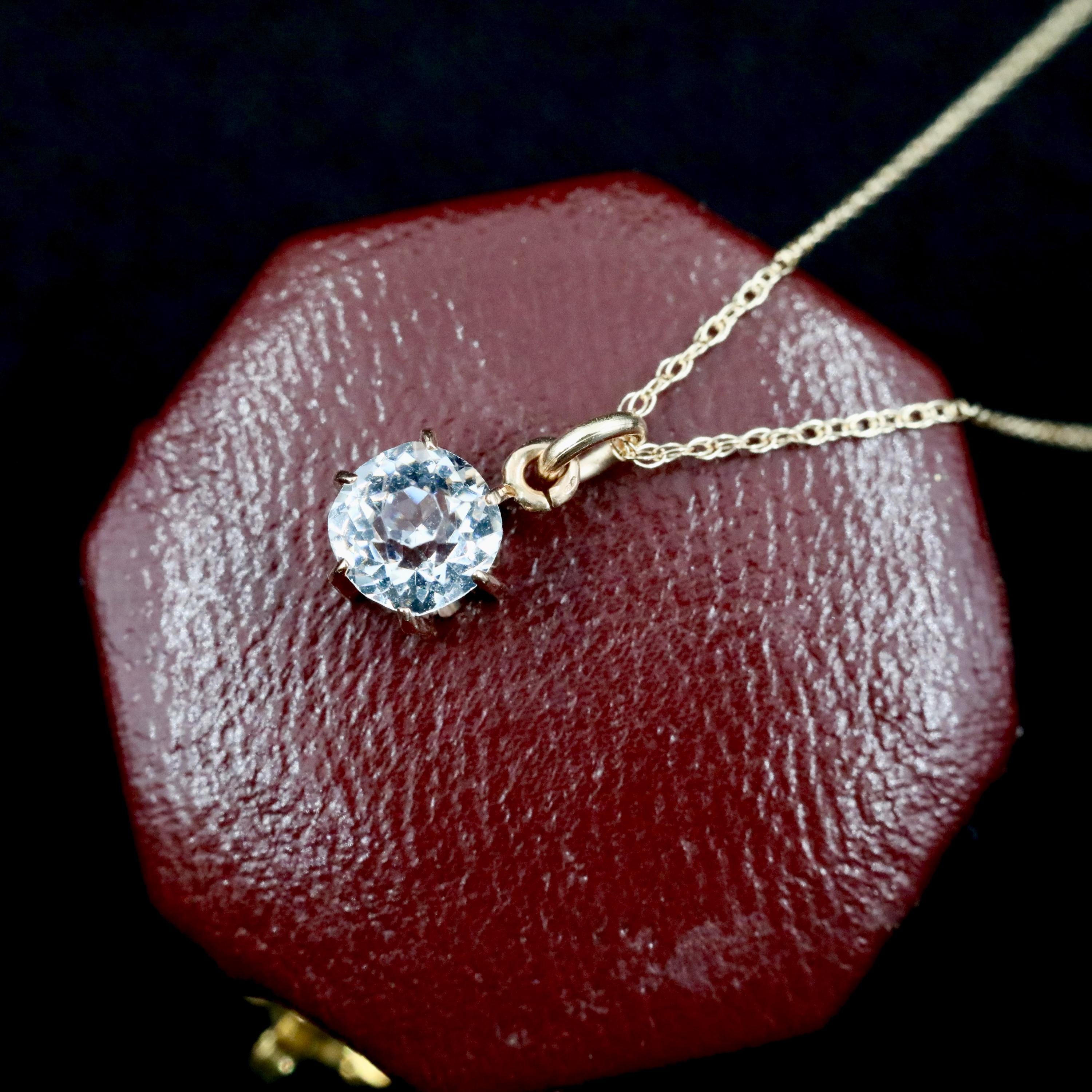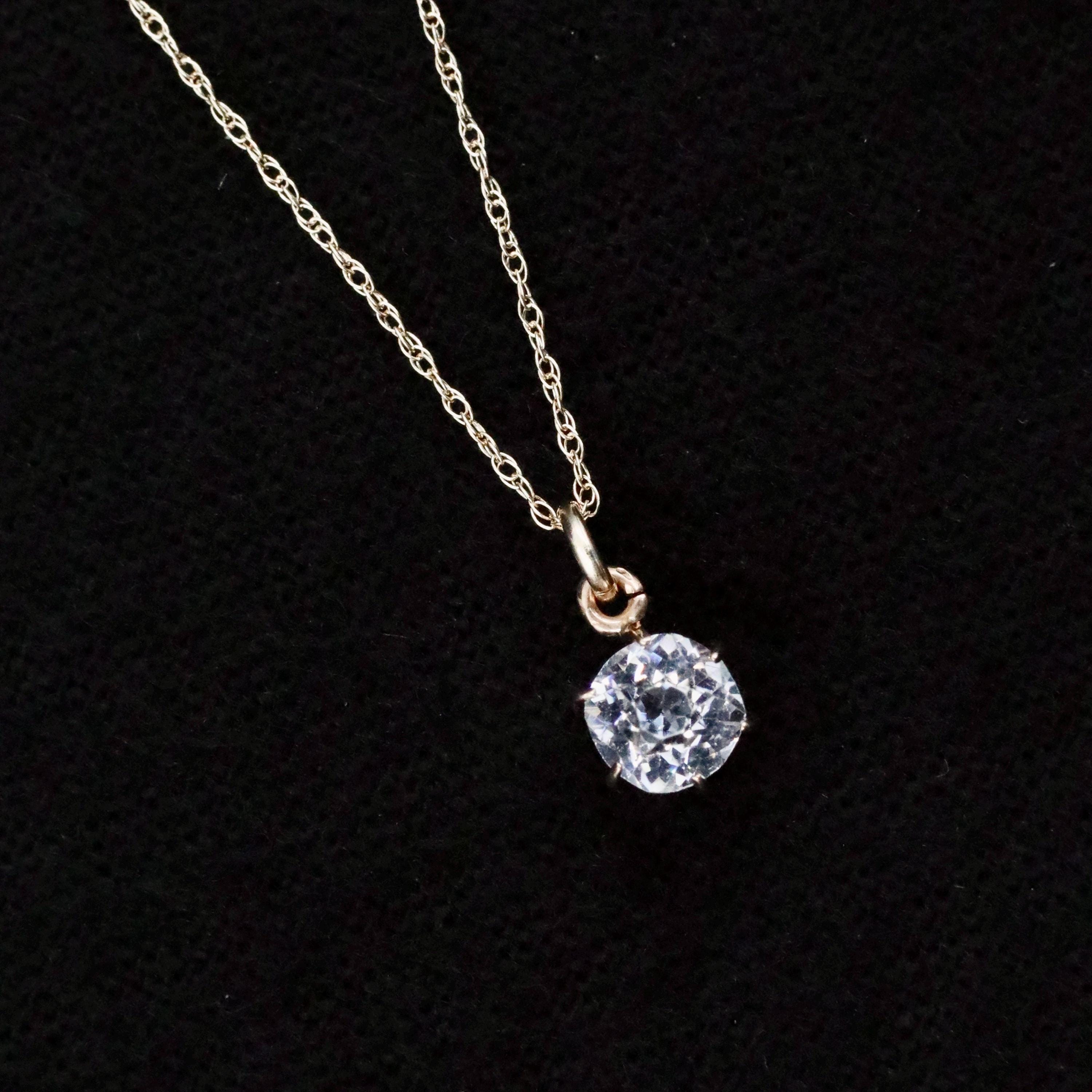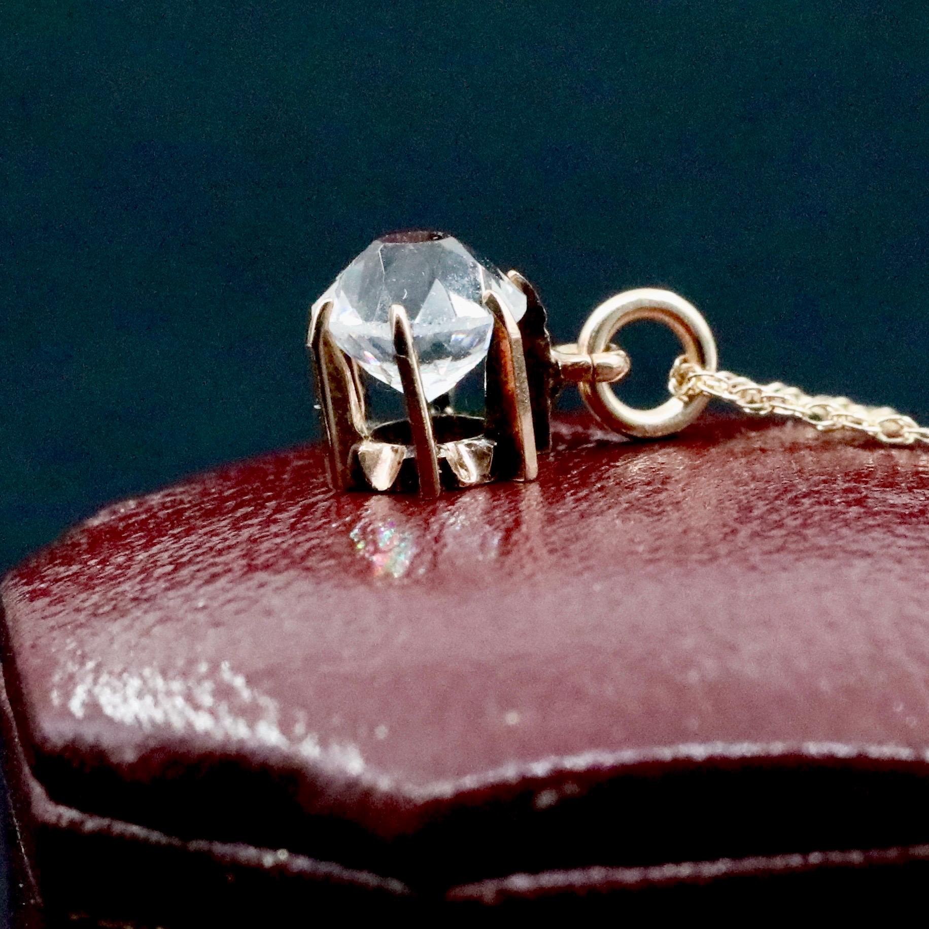 A luminous piece of early 1800s jewelry, this Georgian paste pendant glitters with the charm of an Old European cut stone set in warm 14k gold. Hand-crafted in a classic buttercup setting, the paste stone flashes like an antique diamond, bright, lively, and full of fire.