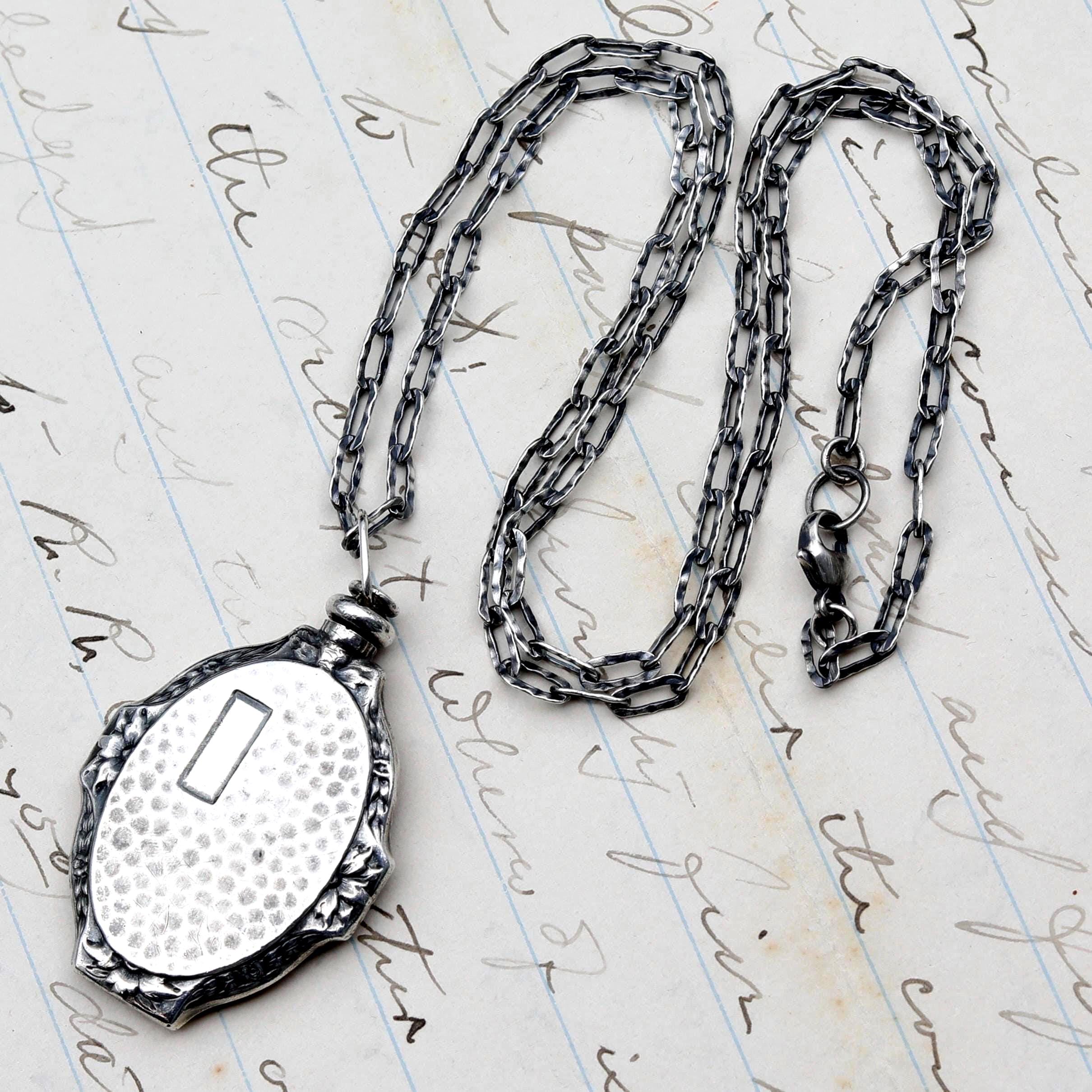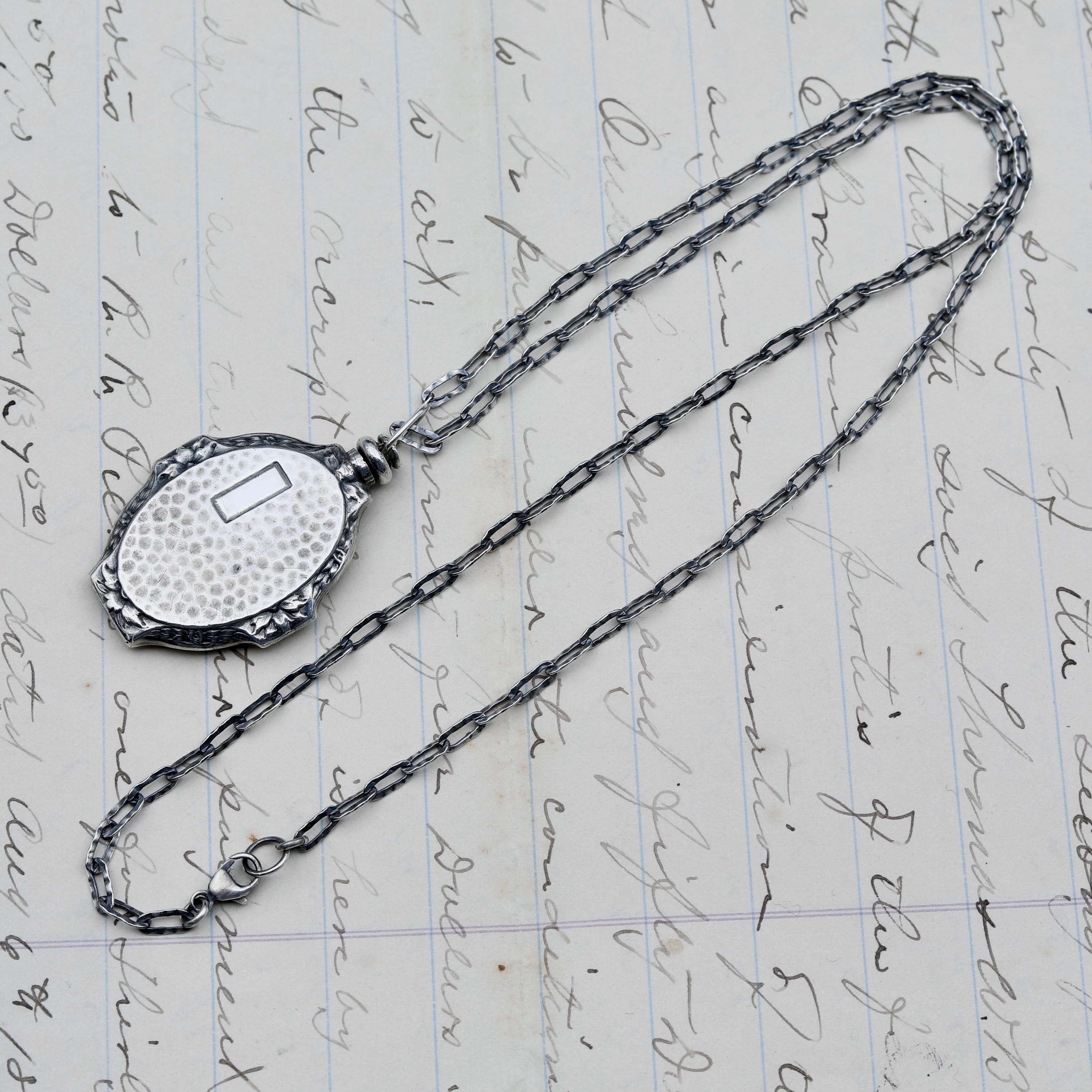 We have paired the bottle with a new sterling silver chain in a complementary finish, chosen to respect the period character while making the piece easy to wear today.