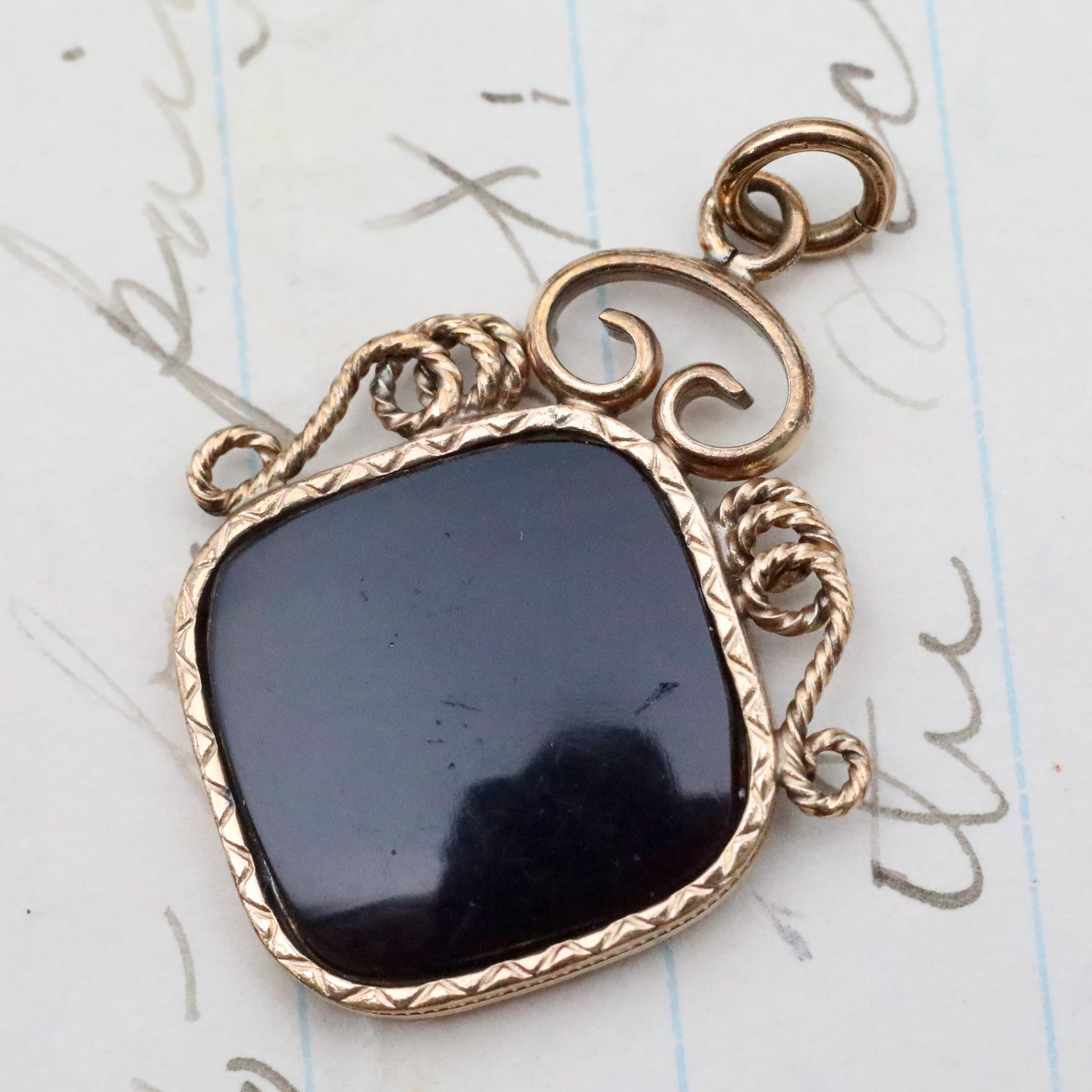 The ornate gold-filled frame features hand-twisted wire and scrollwork, a hallmark of mid-Victorian craftsmanship. Substantial and well-made, this charm wears beautifully layered on a chain, added to a charm necklace, or suspended from a watch chain.