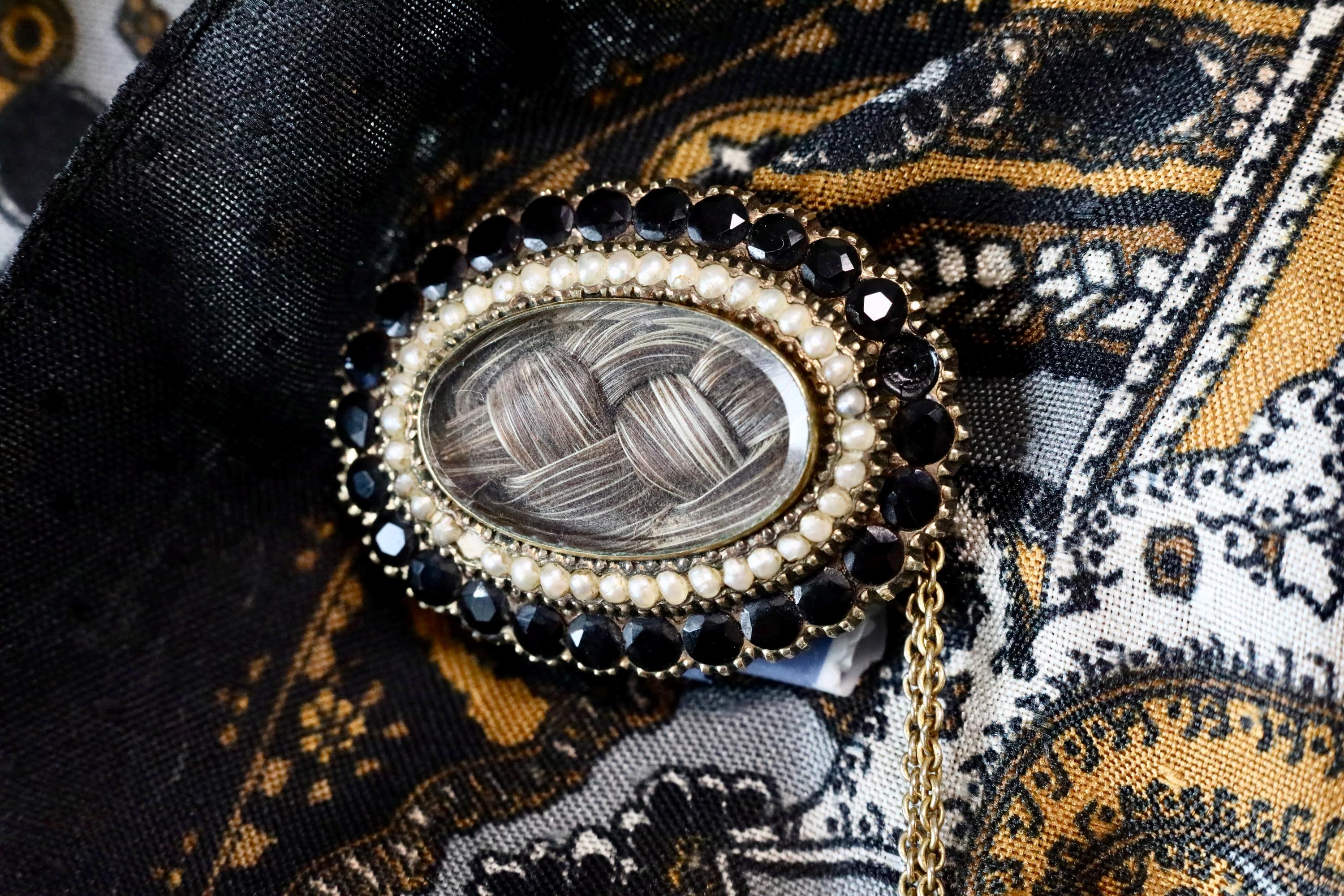 This piece is ideal for collectors of mourning jewelry, lovers of gothic or dark academia aesthetics, and those who appreciate 19th-century jewels with deep personal history. Beautifully presented in a ribbon-wrapped jewelry box, ready for gifting or for your own collection.