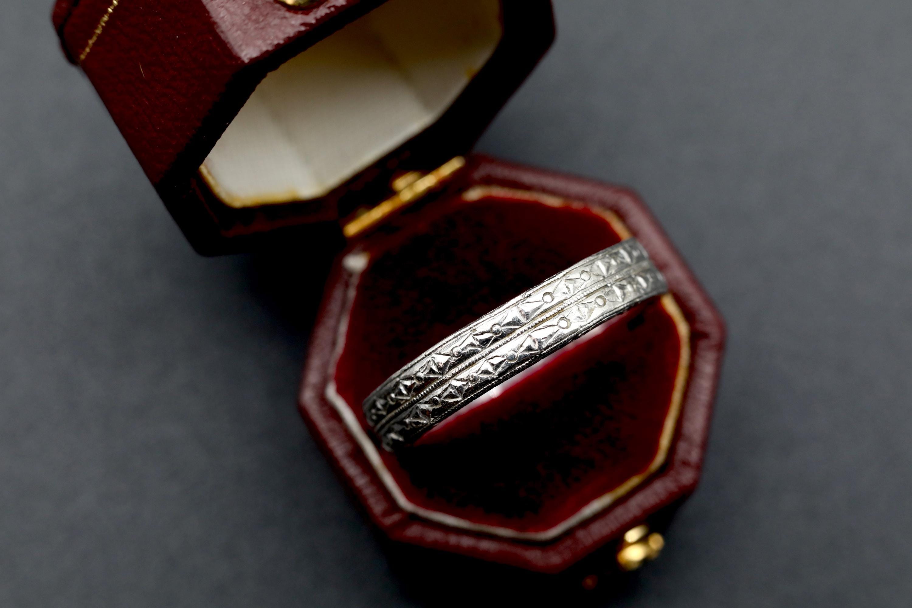 The combination of intricate hand engraving and heavy platinum construction makes this ring exceptional among Edwardian pieces. It bridges fine antique design and timeless strength, equally at home as a men’s wedding band or as a bold unisex statement ring.
