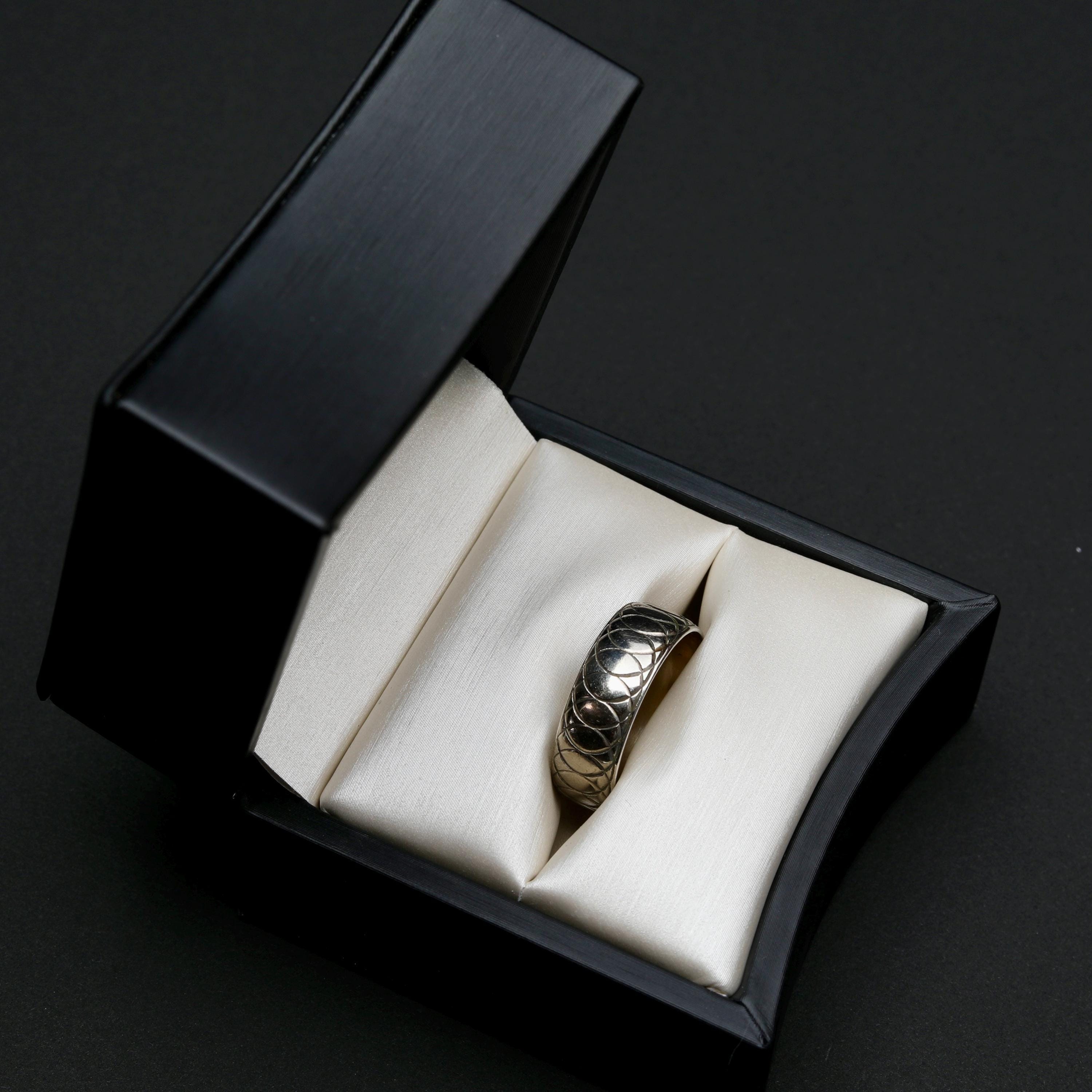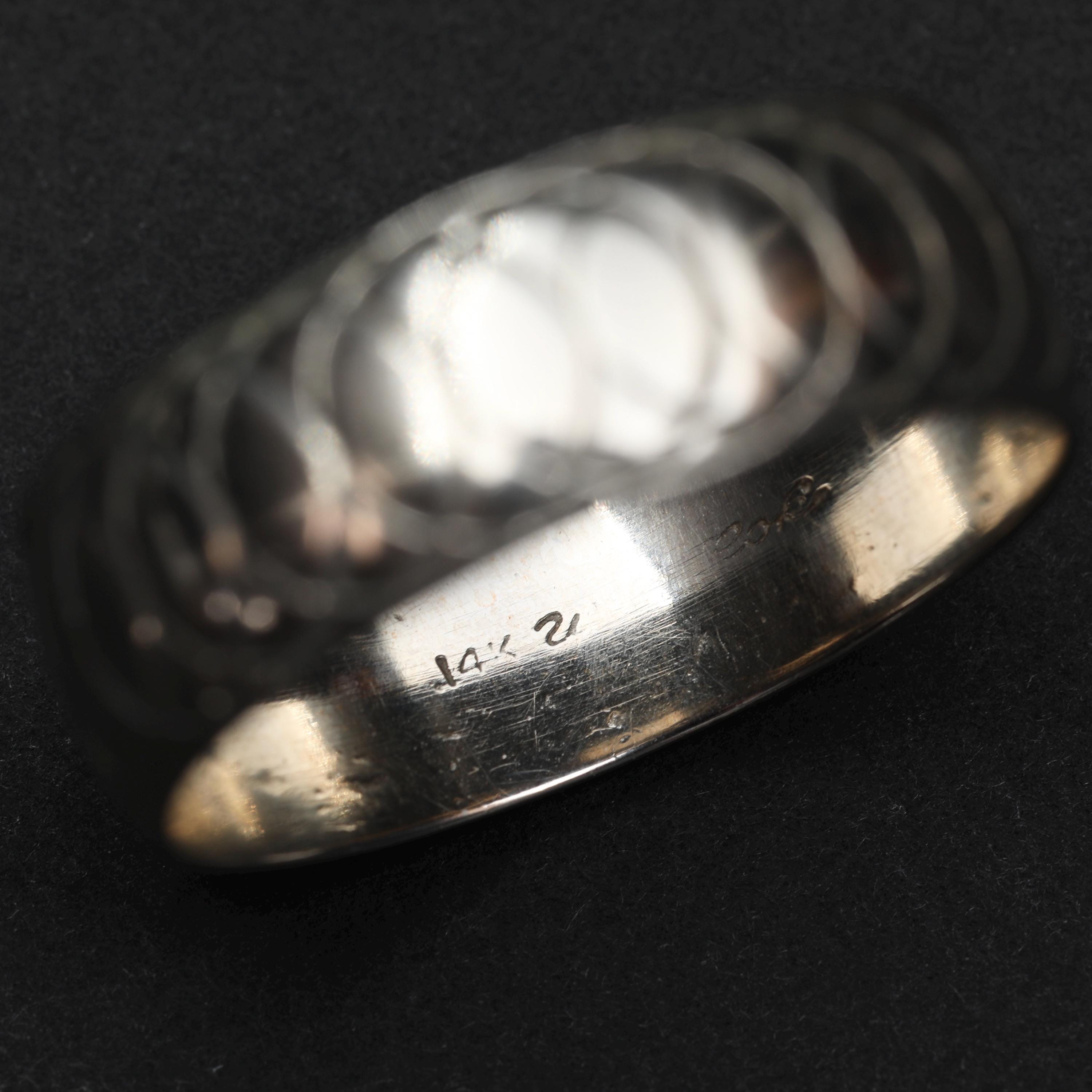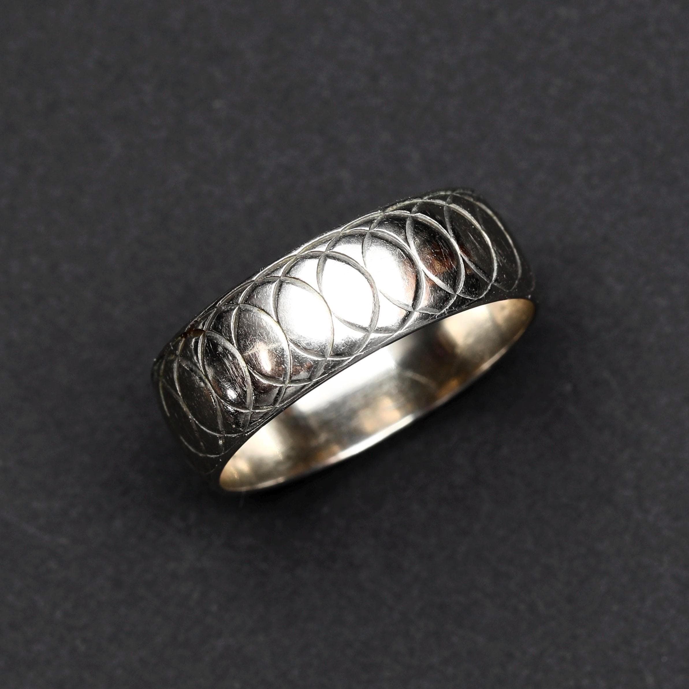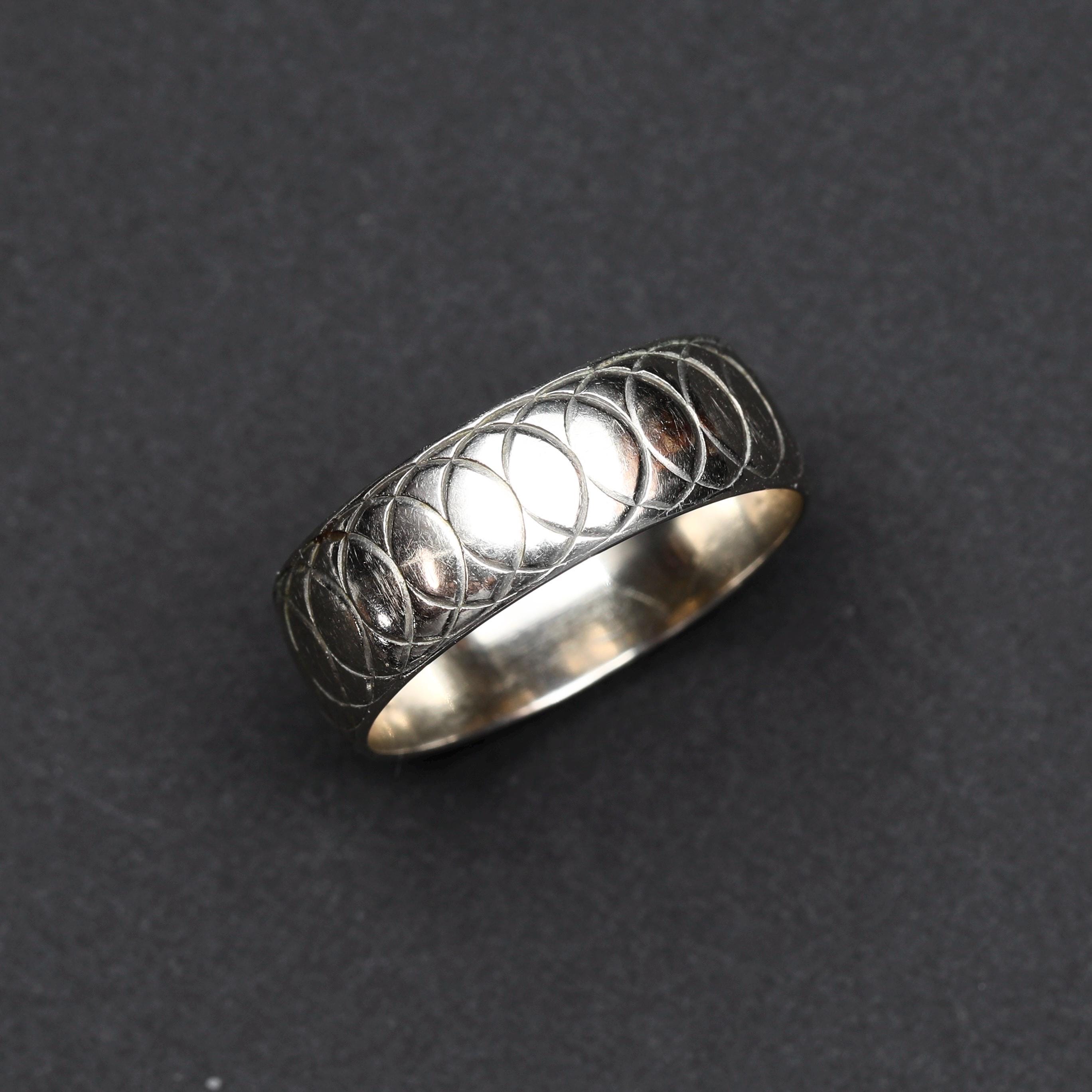 The exterior is defined by crisp engraved geometry, while the interior is smoothly finished for comfortable daily wear. Made in solid 14k gold and built for longevity, this is a timeless vintage band.