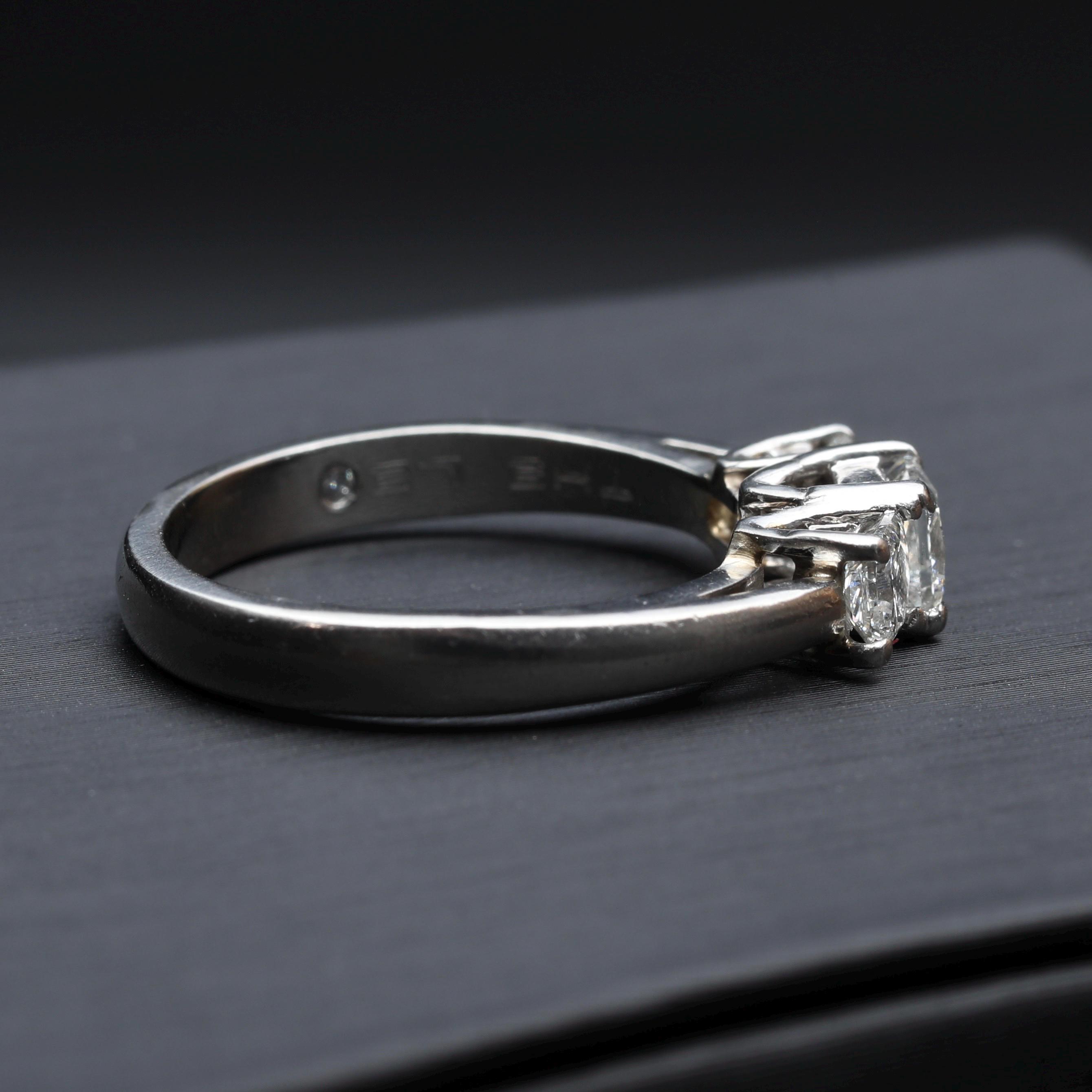 Crafted in solid platinum, the setting has a substantial, balanced feel on the hand, with carefully proportioned prongs that allow each diamond to remain the focus. The LEO® cut diamonds are known for their enhanced brilliance and fire, offering lively sparkle.