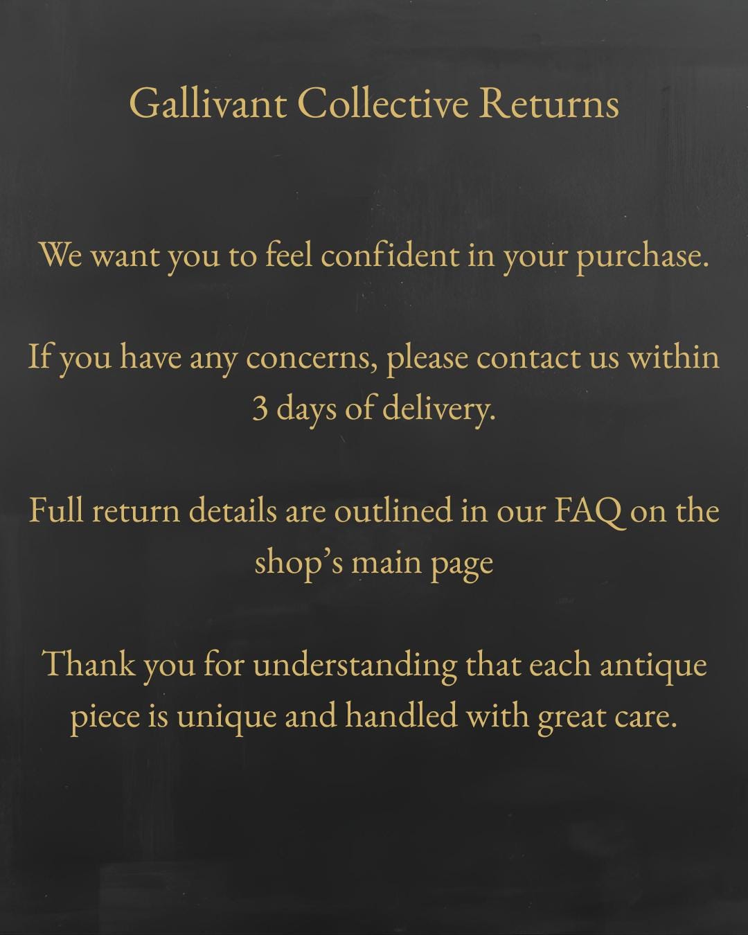 We want you to shop with confidence and love your piece.