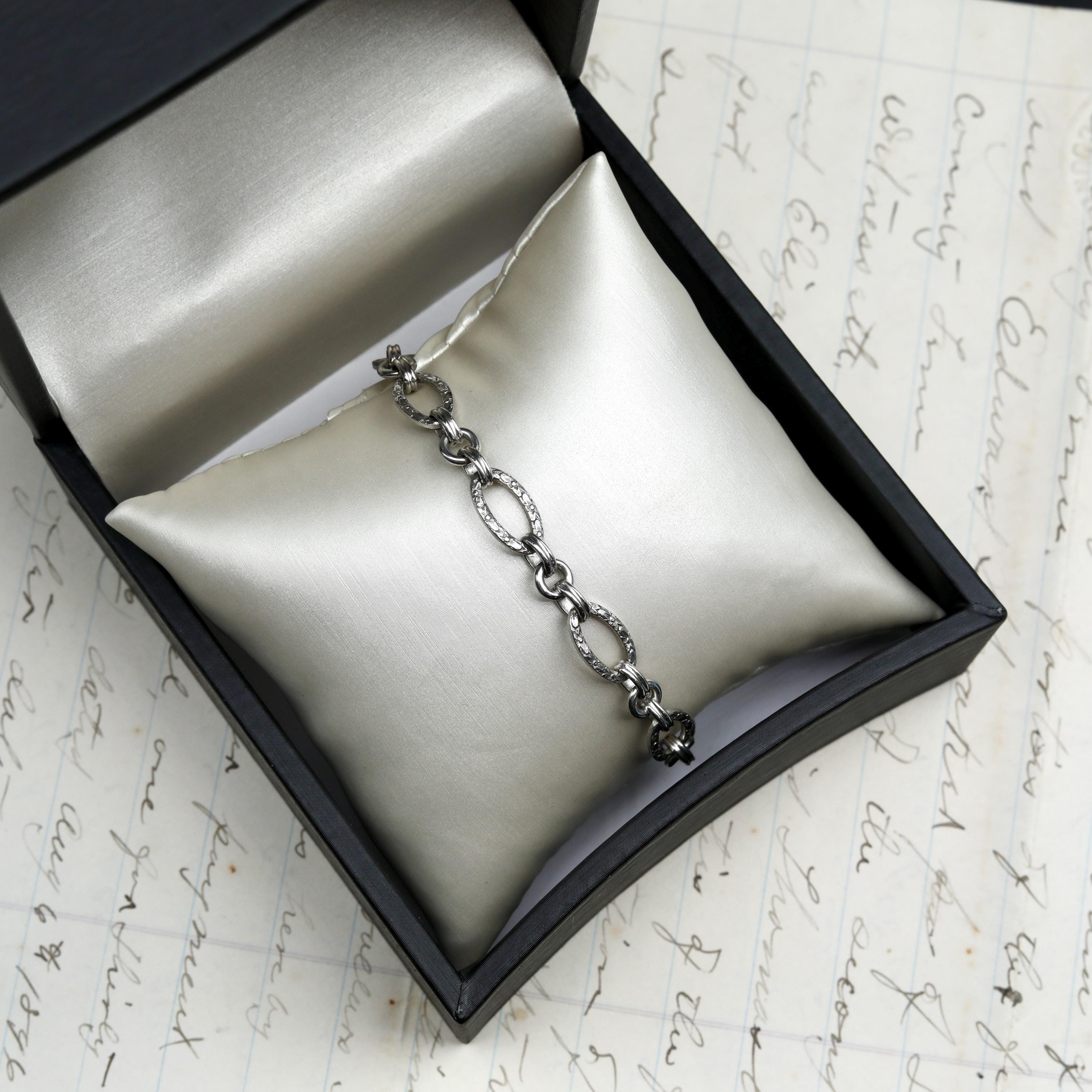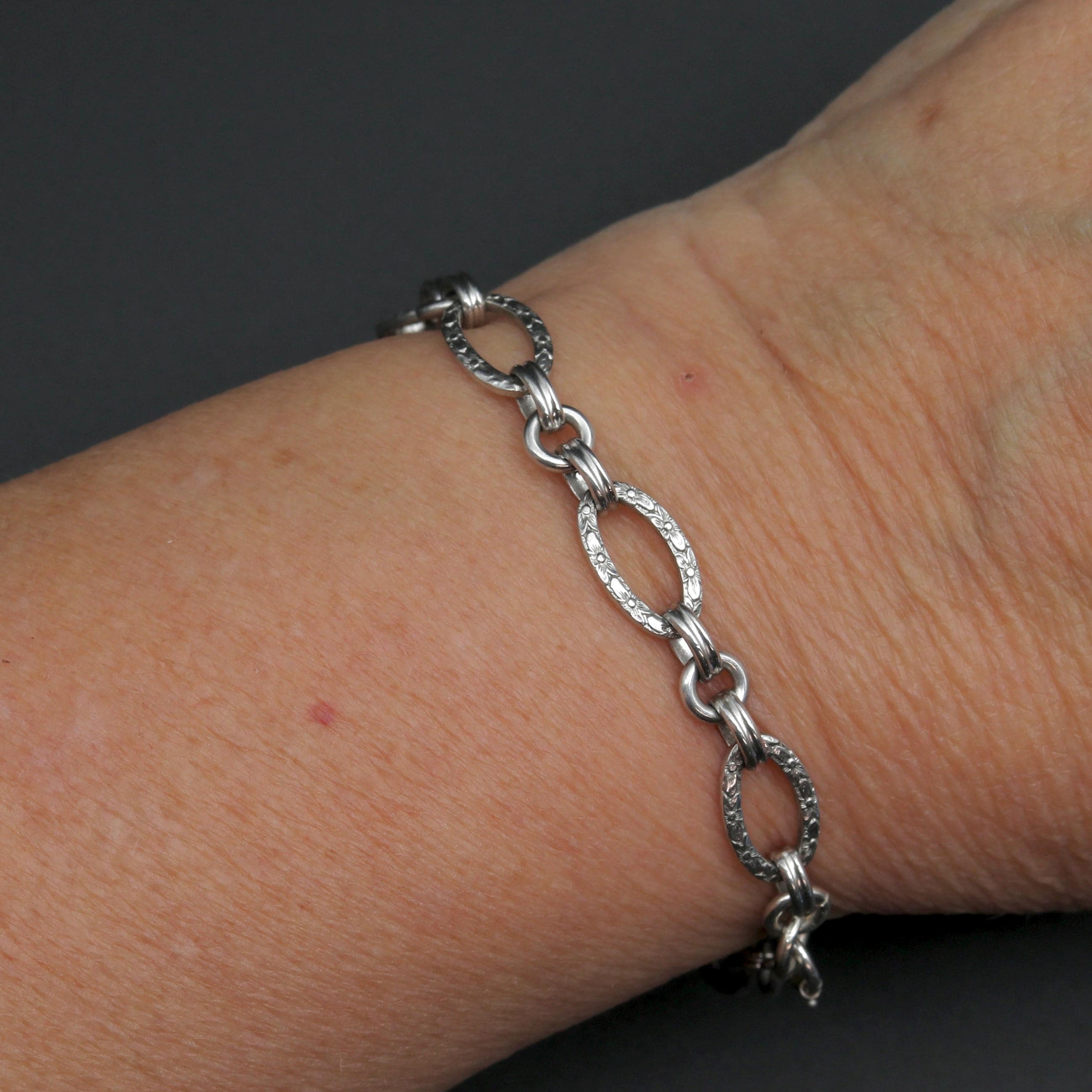 Well constructed, with engraved oval links finished on both sides, an uncommon detail. The links are gently curved, allowing the bracelet to sit naturally on the wrist.